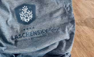 Wir bedrucken stilvoll Morfs für den Laschenksy Hof